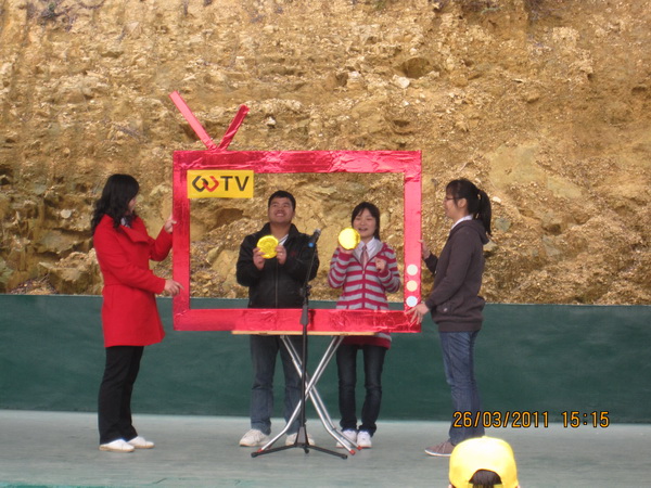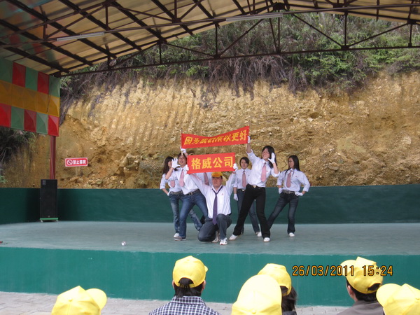 2011年3月27日,我司組織了2010年度優秀員工和QC小組成員到江門恩平泉林山莊進行了頒獎兼聯誼活動,上午我們進行了CS野戰、大腳八等拓展活動,下午是我們2010年度優秀員工、質量先進個人、優秀班組和優秀班組長的頒獎活動,上年度共涌現出23名優秀員工,13名質量先進個人,3個優秀班組和優秀班組長,他們用優異的表現獲得了公司的肯定,公司給予他們物質和精神上的獎勵。頒獎過程中穿插中公司自己組織的文娛活動,活動形式豐富多彩,有合唱、對唱、游戲、廣告、小品、舞蹈等,雖然我們只有短短一周時間的準備時間,但是他們都很努力去排練,節目演出效果還不錯,公司領導也積極參與到節目中。