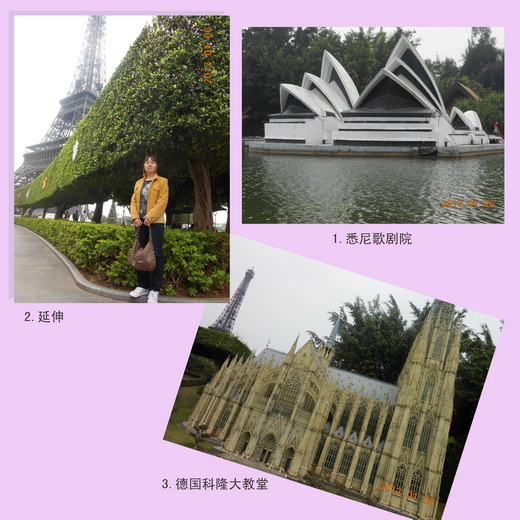 美名其曰世界之窗,那縱然是世界各地自然風光與人文景觀的一個集合體。世界之窗門外廣場上的標志,就是由玻璃構(gòu)建成的金字塔,上面鑲著由江澤民同志提詞的“世界之窗”四個大字;緊接著映入眼簾的便是聞名于世的法國巴黎埃菲爾鐵塔,雖不能與真正的埃菲爾鐵塔相媲美,但世界之窗的鐵塔也是以1比3的比例模仿真正的鐵塔鑄造,站在塔下,讓人有如觀龐物之感,便迫不及待的想要登到塔頂,一觀山河之秀美。隨著登頂?shù)碾娞菀徊讲铰噬杏X猶如接近天際,只感到腳下的萬物越來越小,便可嘆人的創(chuàng)造力是如此的偉大。通過塔頂?shù)耐h鏡可與香港隔海相望,香港正如白茫茫的大海之上浮動的一枚璀璨的明珠,明亮且耀眼,與大陸貌似相隔甚遠,但我們的根是在一起的。再回過頭來俯視深圳,“會當凌絕頂,一覽眾山小”甚是妙哉,將深圳的繁華盡收眼底,深吸一口天地之氣,悵然若揭,一切浮華虛妄都煙消云散,剩下的只有人與人之間的真誠、赤膽及和諧,仰觀宇宙之大,沒有什么能夠大過眉宇間的一雙亮睛,俯察品類之盛,沒有什么能夠盛過現(xiàn)掠盡繁華之后這上不接天,下不接地的一聲長嘆。